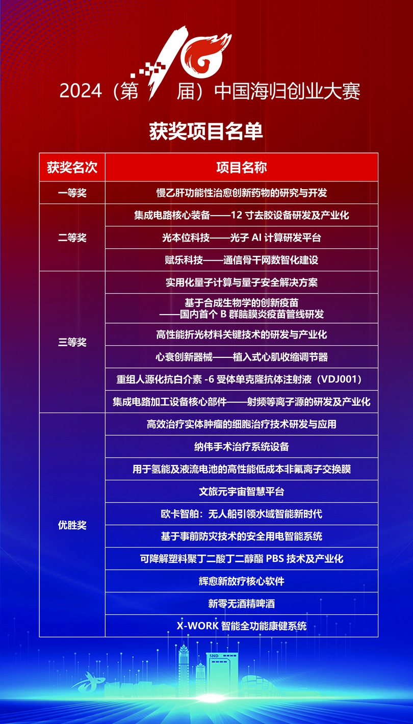 2024(第10屆)中國海歸創(chuàng)業(yè)大賽貫徹落實黨的二十大和中央人才工作會議精神,堅持融合共享、開放創(chuàng)新,充分發(fā)揮協(xié)同作用和各方優(yōu)勢,由留創(chuàng)園工委會聯(lián)合江蘇省、蘇州市8家單位共同提供組織服務保障,北京、包頭、上海、南京、寧波、廈門、濟南、煙臺、長沙、珠海、東莞、西安、昆山、丹陽等地20多家單位協(xié)辦,全國300多家創(chuàng)業(yè)園區(qū)、投資機構(gòu)等企事業(yè)單位和高校參與賽事,在政策、空間、產(chǎn)業(yè)、資本、孵化服務網(wǎng)絡等方面配置優(yōu)質(zhì)資源。大賽聚焦“人才+科創(chuàng)+產(chǎn)業(yè)+金融”,組建規(guī)模10億元專項基金,撬動社會資本給予參賽項目優(yōu)先投資支持;組織“海創(chuàng)中國”英才行及專場對接洽談活動,推動人才項目孵化、科技成果轉(zhuǎn)化、金融投資對接、產(chǎn)業(yè)商業(yè)合作;設(shè)立中國海歸創(chuàng)業(yè)大賽服務基地,為優(yōu)秀參賽項目團隊開辟人才、資金、場地等綠色通道,提供創(chuàng)業(yè)全生命周期服務。同時,通過“海創(chuàng)中國”導師行活動和常態(tài)化機制,為參賽項目提供創(chuàng)業(yè)輔導和陪伴式服務。
