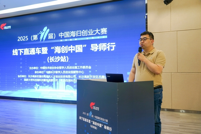 5月12日,2025(第11屆)中國海歸創(chuàng)業(yè)大賽線下直通車暨“海創(chuàng)中國”導(dǎo)師行(長沙站)活動在長沙留學(xué)人員創(chuàng)業(yè)園成功舉辦。本次活動由中國技術(shù)創(chuàng)業(yè)協(xié)會留學(xué)人員創(chuàng)業(yè)園工作委員會主辦,中國長沙留學(xué)人員創(chuàng)業(yè)園服務(wù)中心承辦,長沙高新區(qū)麓谷高層次人才創(chuàng)業(yè)投資有限公司、長沙高新開發(fā)區(qū)岳麓山國家大學(xué)科技園科技服務(wù)有限公司、長沙西湖科技創(chuàng)新服務(wù)有限公司協(xié)辦。留創(chuàng)園工委會產(chǎn)業(yè)與投資促進(jìn)部部長寶玥、長沙留學(xué)人員創(chuàng)業(yè)園及協(xié)辦單位代表出席活動。