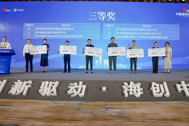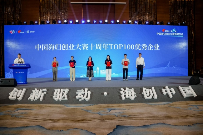 在頒獎儀式中,科技部、工信部、致公黨中央等大賽指導單位以及江蘇省、蘇州市有關部門領導為獲獎項目頒發了獎杯、獎金和證書。現場還作了中國海歸創業大賽10周年總結,全面回顧了大賽舉辦10屆以來所重點開展的工作和取得的成果;發布了中國海歸創業大賽10周年TOP100優秀企業榜單,根據歷屆參賽企業近年來在企業成長性、科技創新力、行業影響力、地區貢獻度等方面進行綜合評定,有海柔創新、青禾晶元、杉數科技、斯乾智駕、漢陽科技、識光芯科、景略半導體、圣德醫療、英磁新能源等100家優秀企業入選。此外,活動還為在大賽組織服務中作出重要貢獻、給予推動支持的一批單位頒發了中國海歸創業大賽10周年特別貢獻獎和組織貢獻獎,并舉行了中國海歸創業大賽成果轉化基地啟動儀式及項目簽約儀式。